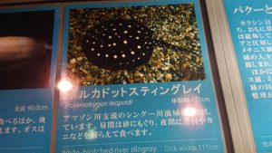 これだけは写真に収めたいと思いましたが、残念ながら当のエイは大きな水槽の奥の方に縮こまっていたので、案内板だけを撮影して退散しました……