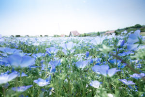 ネモフィラは「Baby blue eyes」とも呼ばれているそうです。ネーミングが素敵ですね。