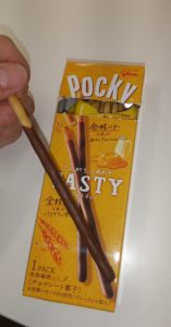 さて、先日頂いたこちらのこんがり、しあわせTASTYなポッキー