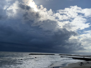 しばらく海を眺めていると三重県の方から何やら怪しげな黒い雲の集団。
