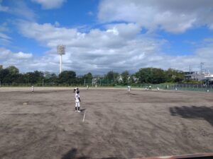 野球部は尾張旭市の城山公園で春日居中部中との対戦でした。
