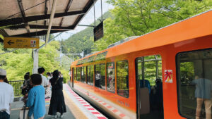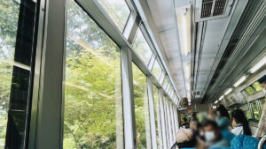 今回は昼の乗車でしたが、夜は車内の電気を消して、青もみじのライトアップも楽しめるそうです。