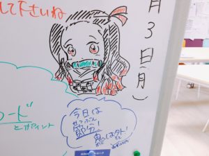 なので昨日は節分にちなんでホワイトボードに禰豆子ちゃんを描きました