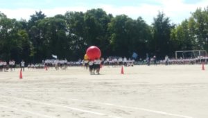 大玉ころがし・・・ではなく、大玉運び!チームワークが試されます。