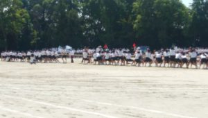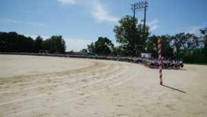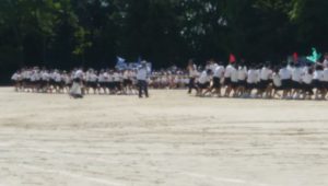 赤・青・緑・白組です。私の母校は田舎の人数の少ない学校だったので、人数の多さにびっくりです!!